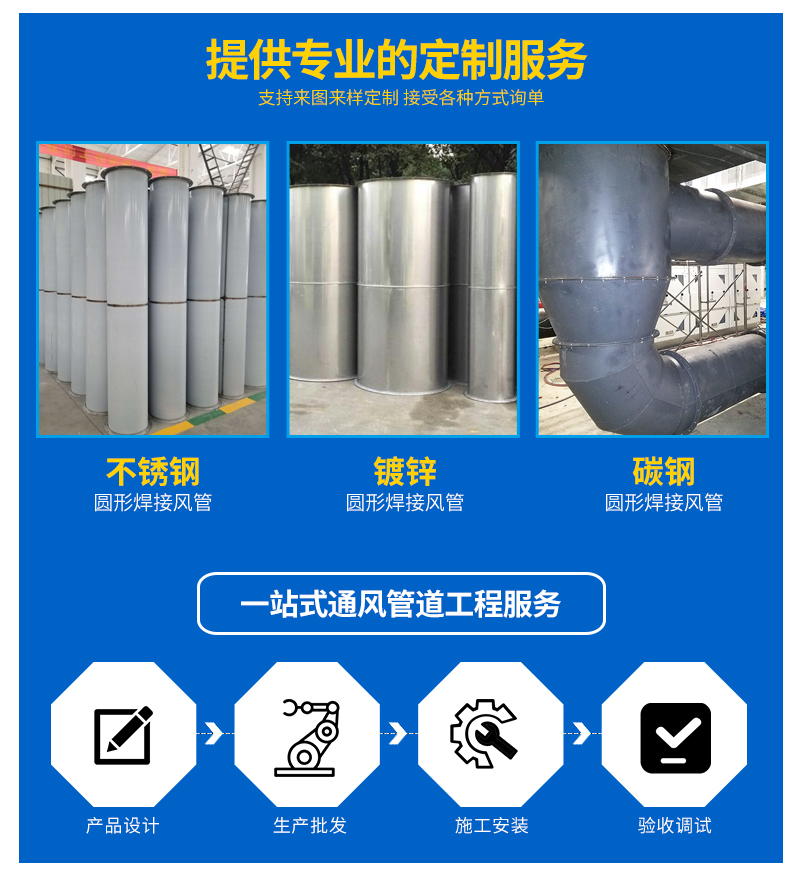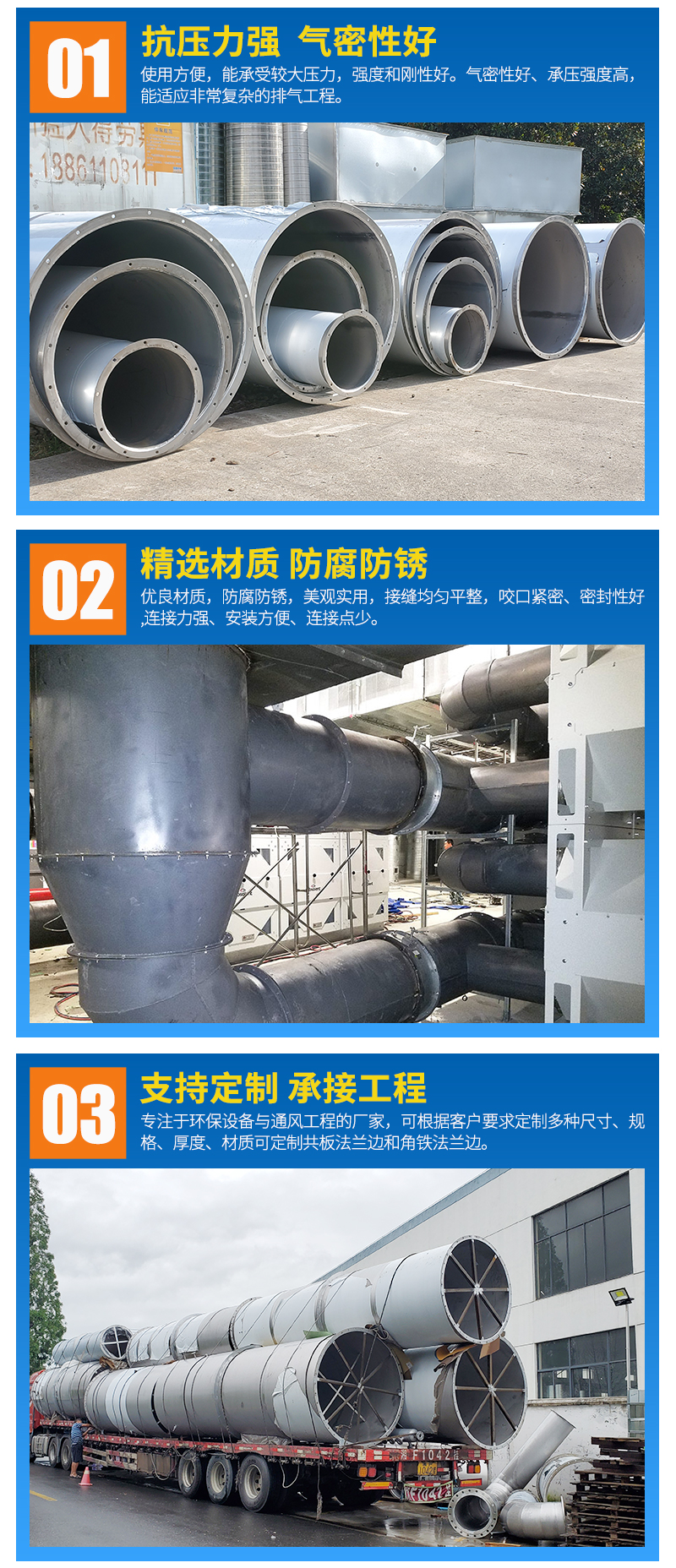 1、外形美觀、內(nèi)壁光滑、阻力小、氣密性好、承壓強(qiáng)度高,能適應(yīng)非常復(fù)雜的排氣工程。