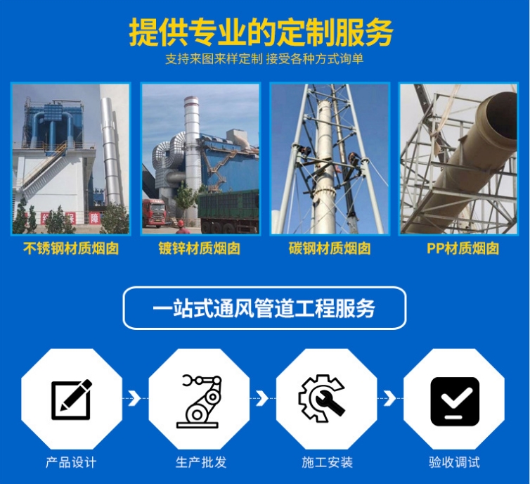 6、性能好,是磚、水泥、普通碳鋼板煙囪的更新?lián)Q代產(chǎn)品。